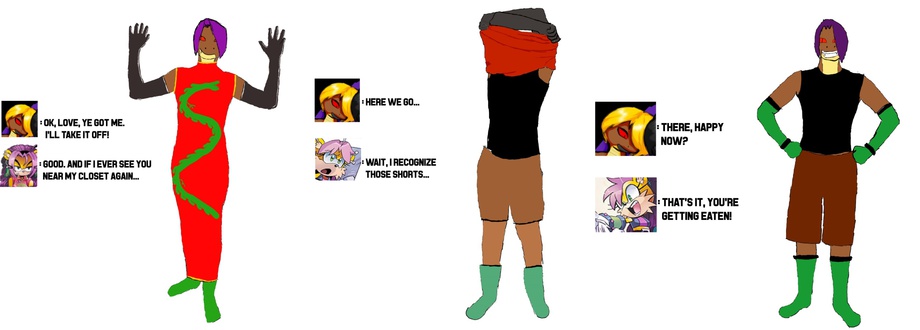 Ricky is in your wardrobe, trying on your clothing items! And Mina is NOT happy about it...