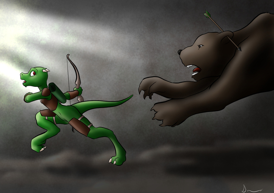 Ok, she understood why the bear was mad. Her bow wrote a check her quiver couldn't cash. To be fair, had she hit the eye socket like she had intended, they wouldn't be having this... discussion... right now. So yeah, the bear had a reason to be mad. She just wished he didn't also have that erection...