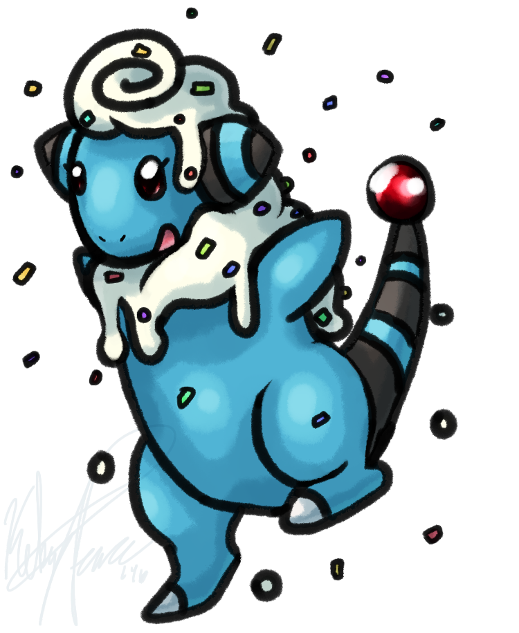 I named her Candy when I caught her cause she was pink and blue, like cotton candy, once she evolved her fluffy turned yellow like butter cream icing.