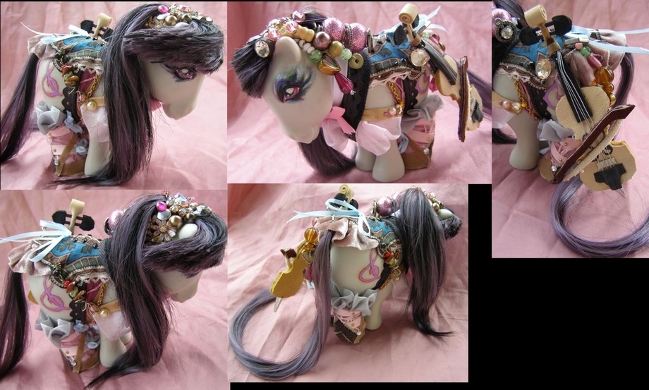 Pony base was a generation 1 twinkle eye unicorn Speedy- body has a base coat of Gesso to secure the full body repaint. Repaint is multiple layers of white acrylic paint. Eyes are painted in my realism/fusion style, I in-set sapphire-colored jewels and permanently fixed them in with Gorilla glued, which is sealed with a thick layer of Tacky glue.