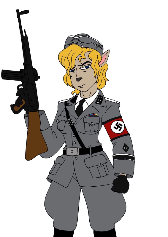 However Jaus' idea is that Isolde started out as a radio operator before showing aptitude and gradually managing to rise through the ranks and become an obersturmbannführer, however, the disdain her male colleagues had for her ensured she was relegated to non-combat duties in the SD. Nevertheless, determined to prove herself useful to the Fatherland, Isolde throws herself fully into her duties, meaning she zealously commits a variety of war crimes and in general is just plain nasty. But her hardness and dedication to the Nazi cause earn the respect and loyalty of the men serving under her.