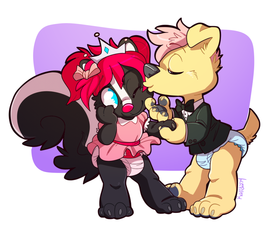 the sweet puppy prince litpup is trying to sway the beautiful princess cassy into dancing with him. by the look of it its working!