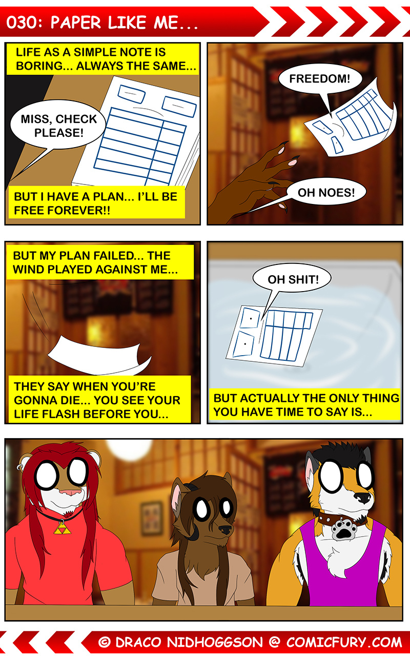 Sorry for the delay on the comic! I've been working on some entries for my fighting club and that took time. Anyway, here's the strip for this time... and again, is based on a real life event as a homage to a show I really like "Dead like me". I hope you enjoy it!!