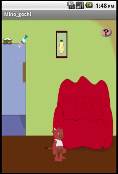 Here we have some images of the app. The mino jumping. He jumps when you touch him on the screen, and trying to make more animations for this action.