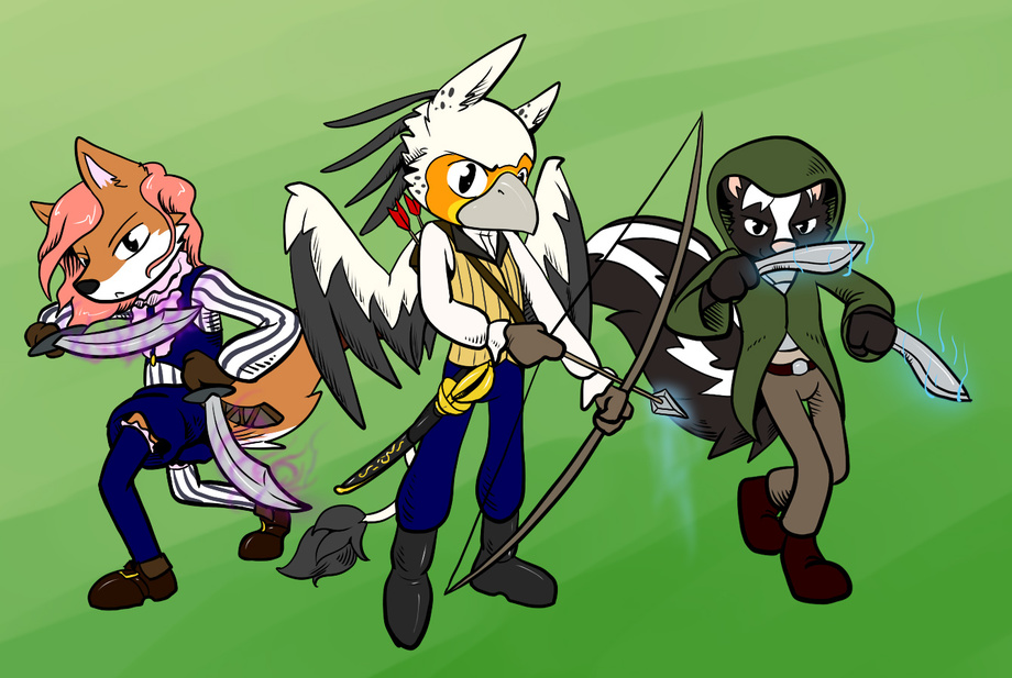 A trio of Pathfinder characters - Ren, owned by paranoidnikki, Varik, owned by myself, and Nox, owned by toyapup