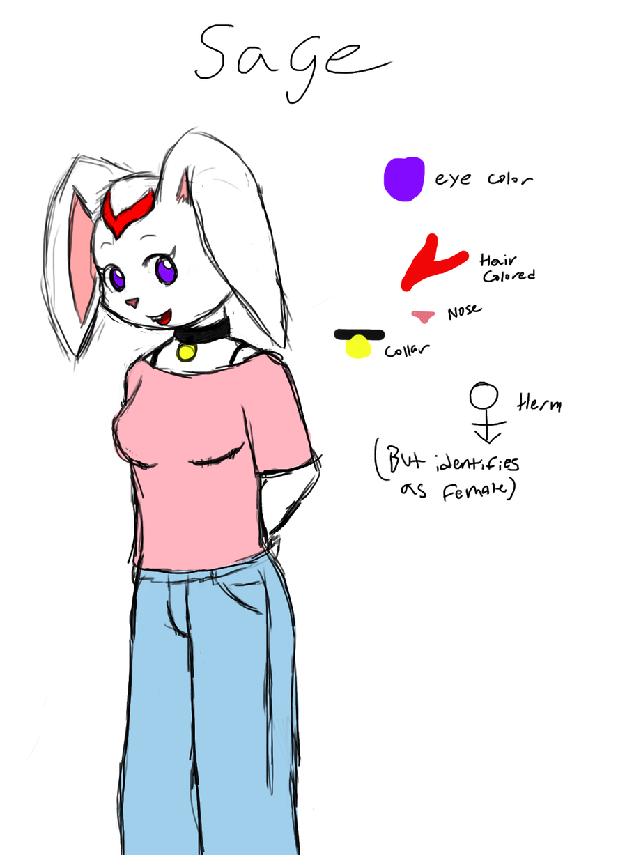 Sage is a bunny. She is secretly a hermaphrodite, but as far as anyone she has ever met is concerned, except a few from high school, she is a female, with nothing extra in her jeans.