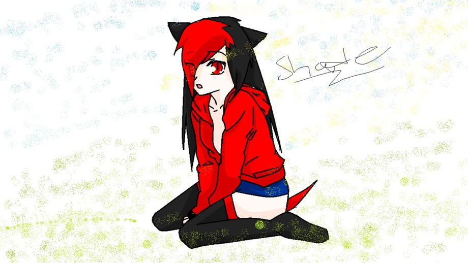 black and red hair,black fur,red tail