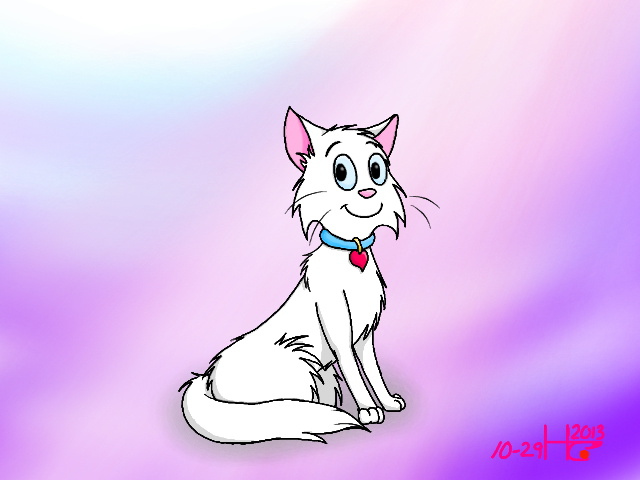 This is Maisie the cat. She's from the 1999 Disney direct-to-video movie and sequel to a 1987 classic, The Brave Little Toaster: To the Rescue. I had one hell of a crush on her when I was 5. I'll be 20 next April... Where did the time go?!?! ;w; (date: October 29th, 2013)