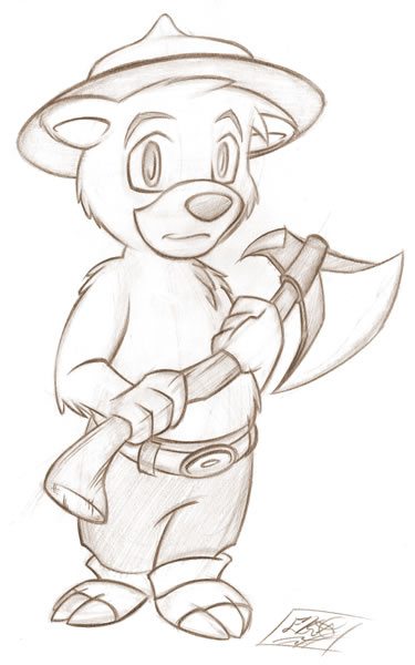 Tried going more Disney than my usual style. Admittedly, I spent more time on trying to get that down than going with something more expressive than [GENERIC POSE A]. A screw-up on my part but it did give me more of a chance to puzzle out how they did muzzles and head shapes on bear characters back in the 80’s & 90’s.