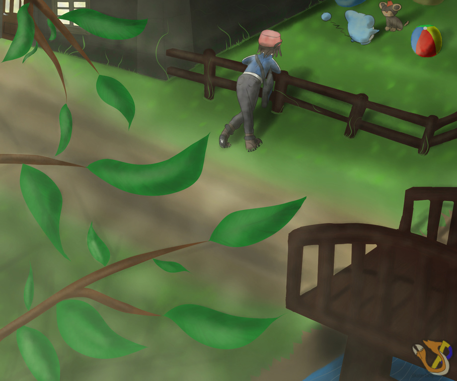 Welcome to Route 7 or as we call it breeding lane. Did this because I finally breed a Shiny eevee ^w^ My first shiny too so I wanted to do something for this occasion, I would say my best work yet X3 I do see things that should be fixed up like the perspective of the building and the fence, however it's not too much of a big deal it's still awesome, also probably the best human I've drawn ^^