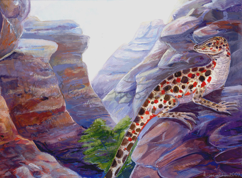 Piece for my final project exam for my Visual Studies Design class. Photo references used for both the lizard and the gorge behind it.