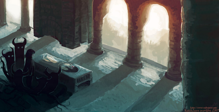 Shadow of the Colossus fan art. Wander brings Mono to the sanctuary, the shadow remnants, the essence of Dormin sprawling around him as he reflects on what he must do to save her.