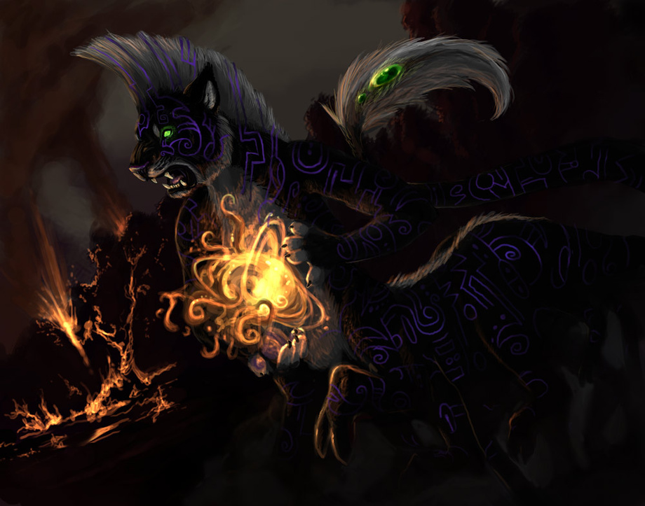 A feline beastman race from the woods, the Khaitchak grow more and more legs over the course of their lifetime, and have been seen with over twenty pairs of legs before. Their stripe pattern bears ancient incantation runes which harbor the magical abilities of the Khaitchak. Each individual practices one particular element, with fire being the most dominant among the clan, other dabbling in lightning, darkness, water, and earth elements.