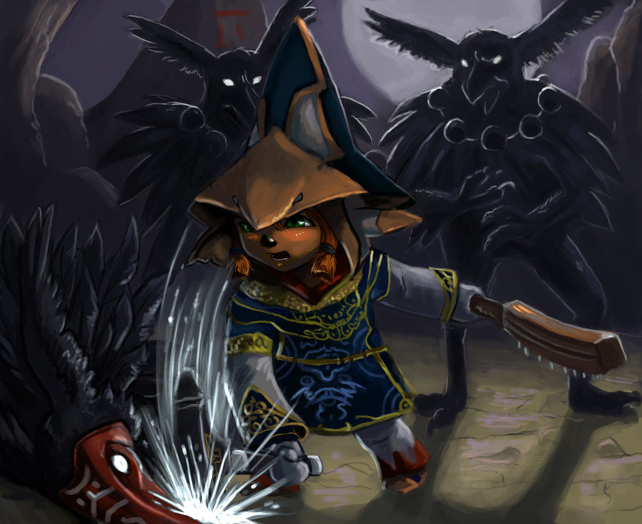 The picture is of my FFXI character, Kyarutaru, beating down some Yagudos with the relic club Mjollnir and a Kraken Club in her other hand, using the special weapon skill Randgrith.