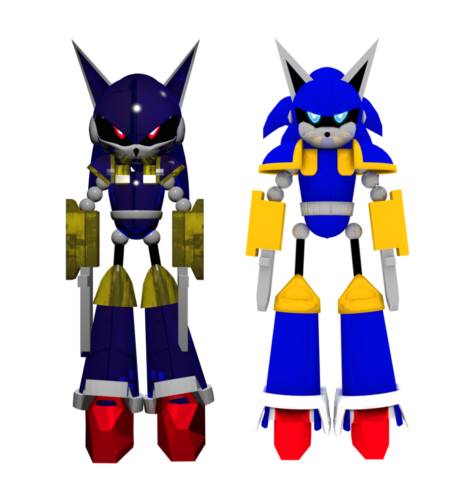 I finally finished working on the first rough draft of Mecha Sonic rendered in Cycles. I'm doing a side-by-side comparison with the old Blender Render model.