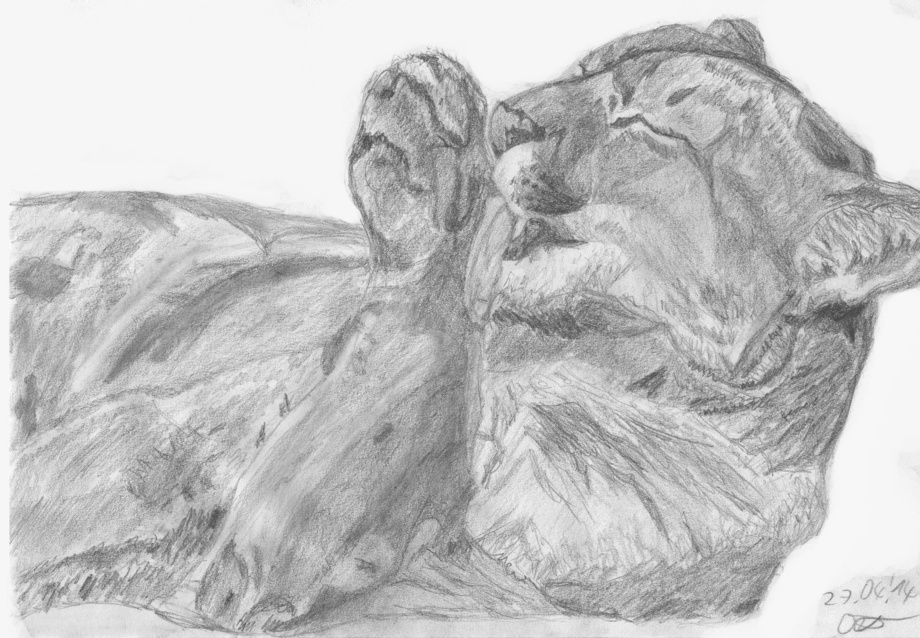 So I decided to take things slow. The head took me around 1,5 hours to complete. It was somewhat of an ordeal as I drew and erased, erased and drew again. Then came that tongue, AND the paw. These two are intertwined. If you mess up one, you automatically mess up the other. Adding details to the tongue and finishing that paw went painstakingly slow.I think I invested an hour in the paw only. Cats have no visible claws and the fingers are well concealed by fur, so that was 'fun' to draw...
