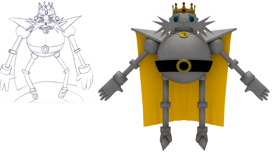 Concept sketch and 3D model of my own design. Meet the Mecha King, a robot incarnation of Dr. Eggman 1000 years into the future.