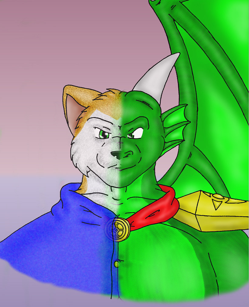 One half is my husky form which is how i spend most of my time, but on rare occasions, under special conditions, a transformation can take place which temporarily changes me into my dragon form.