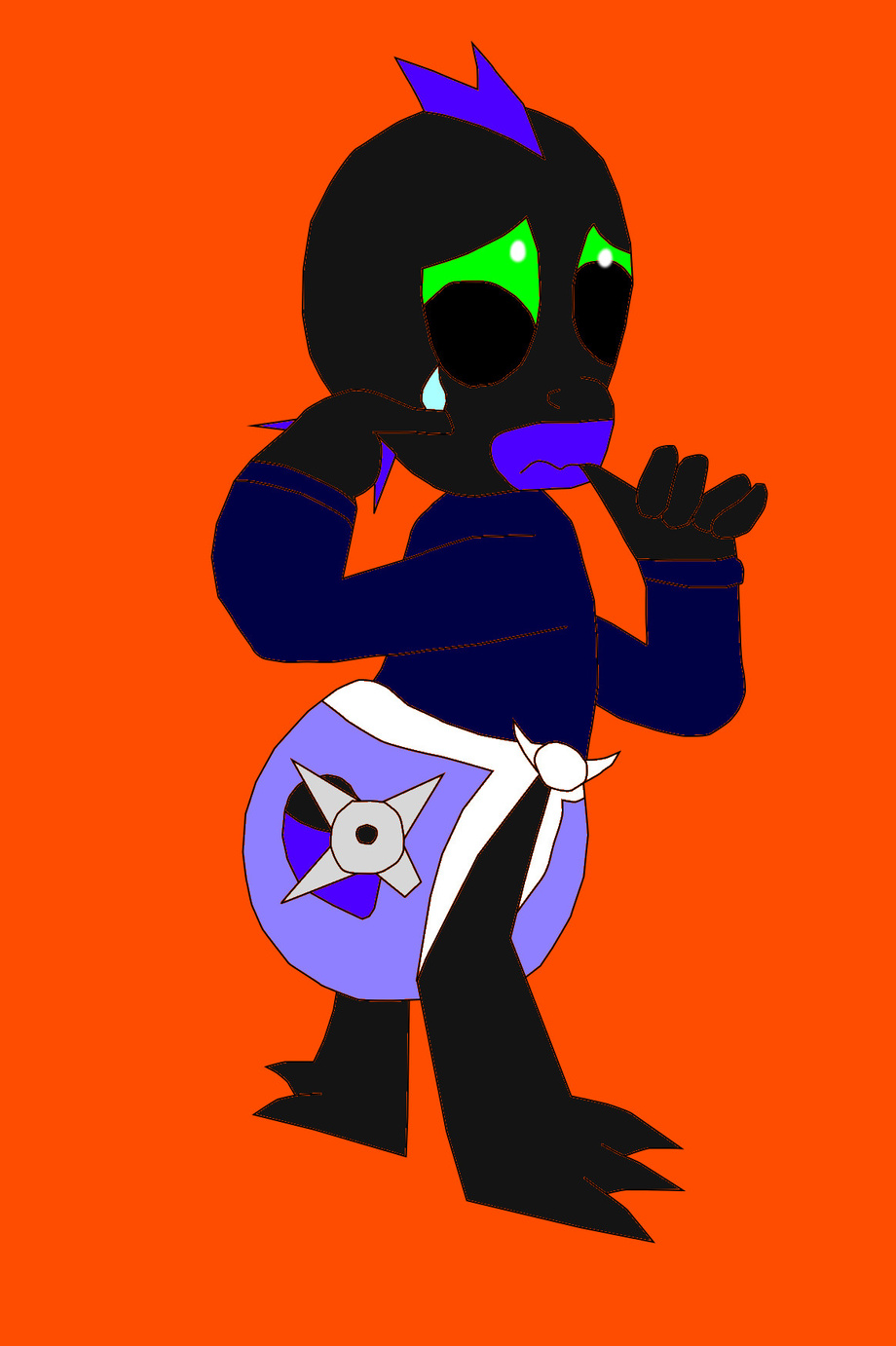 Before Bolton began my baby Ninja training, he performed a quick evaluation test. I asked what it was and OWW! He threw a shuriken right at my diapered bum. Tears of pain streamed out of my eyes as I sucked on my thumb. Bolton had a long schedule ahead of him. He took away my shirt, as I wasn't Ninja baby enough to wear it.