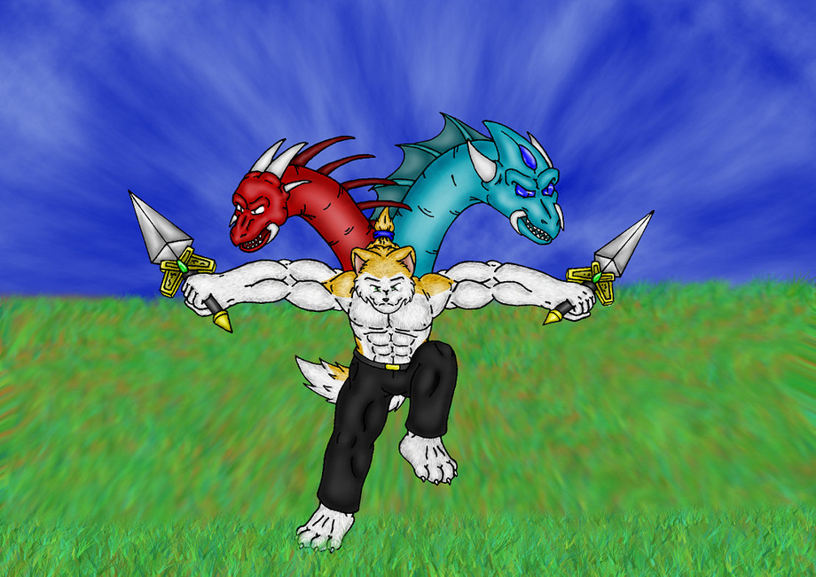 This picture is supposed to be me playing around as one of my favorite characters from the Star Ocean 2 game, Ashton the swordsman who was cursed to have two dragons fused onto his back.