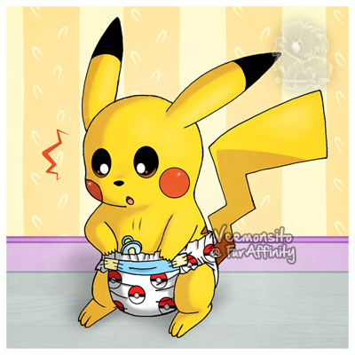 It was an ordinary day for Pikachu. He enjoyed to suck on his pacifier as all babies do. He decided suddenly that he would check into the diaper to see what he could find there. He had recently watched an episode of Rugrats where Tommy had picked up a screwdriver he had in the diaper. So he wanted to check if he had one to. But just as he began to open the front of the diaper so his pacifier fell down and now it looks like the diaper sucking on the pacifier instead of Pikachu.