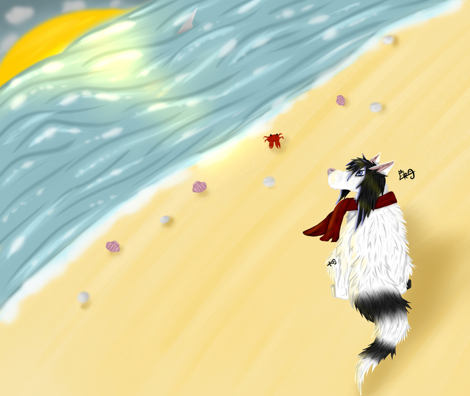 Point commission off dA for Moonlit-RainStorm of their fursona enjoying a sunset.