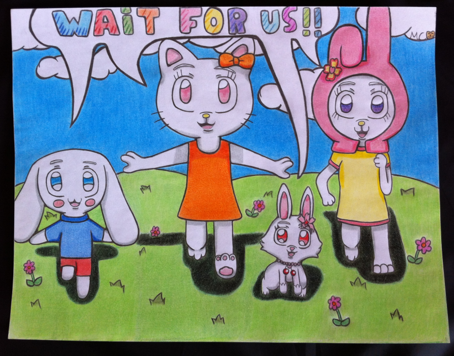 Being a bit of a fan of Sanrio Characters, I'm surprised I didn't make fan art of any of the characters sooner. From left to right are Cinnamoroll, Hello Kitty, Ruby, and My Melody. I wanted to make them look a little more childlike, except for Ruby, she looked kind of weird with a humanoid body. I'm not happy with their shadows, but this still came out really cute.