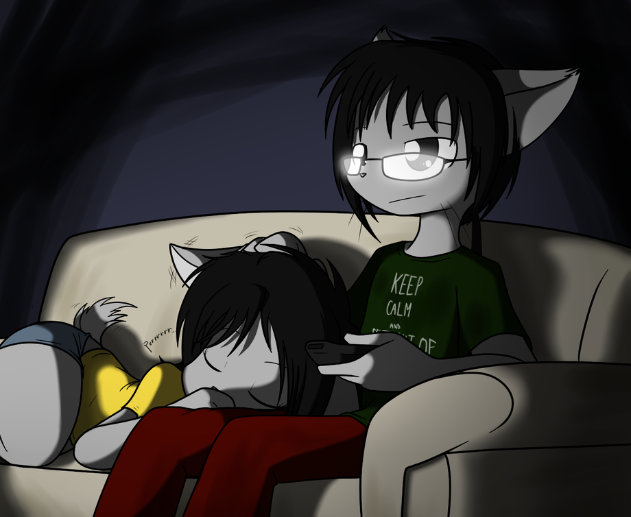a typical night with my cat and his sister just... chilling out together watching some TV.