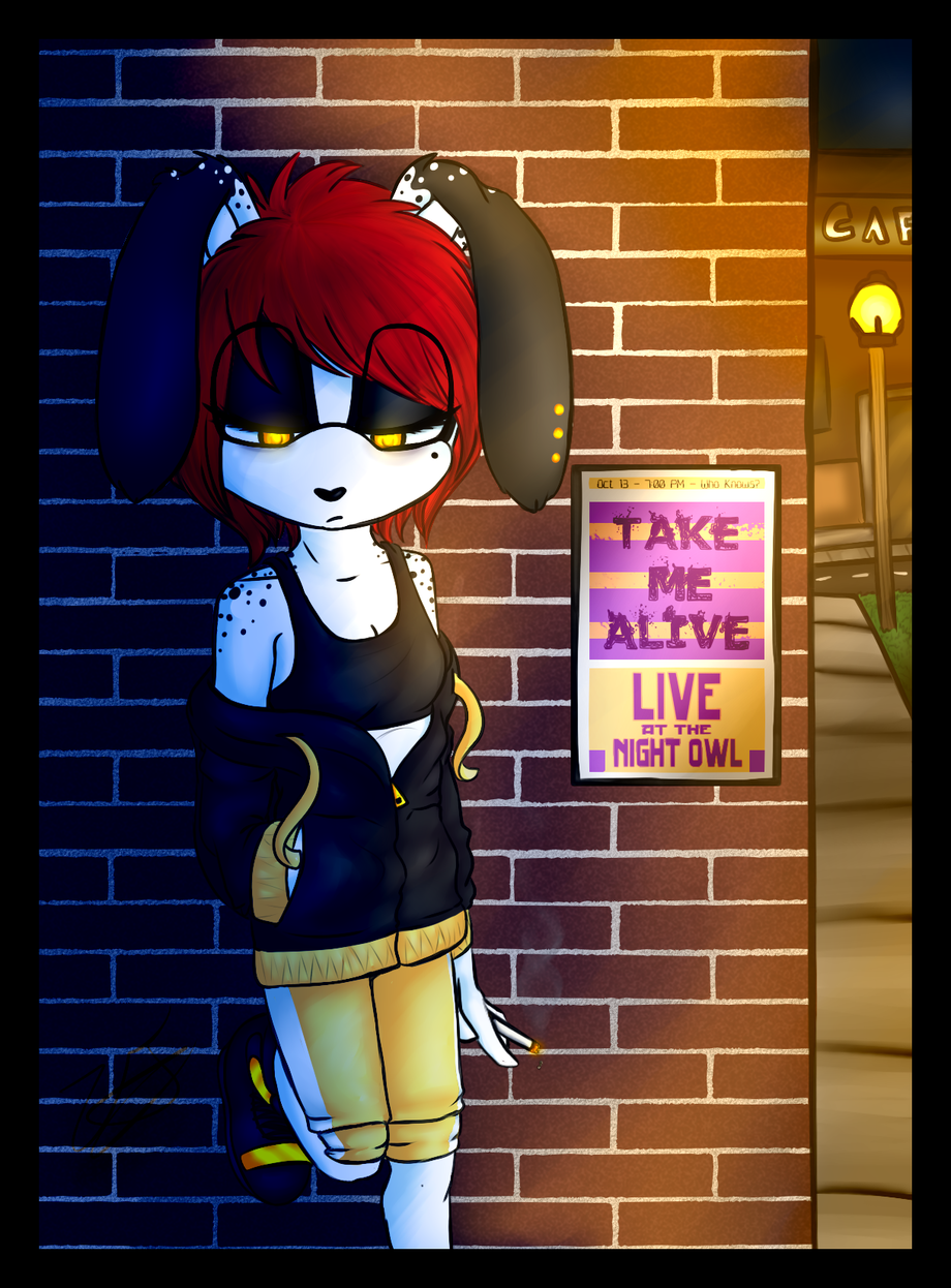 There is some significance in this that Debris actually quit smoking several months ago. Her mama got onto her for it, and because she respects and loves her foster mom more than anything, she promised her she'd quit. Originally, it was supposed to be part of a storyline she had with another character that lead her to pick it up again, out of stress and heartbreak. But as that character is -sadly- no longer a part of her story, I'm going to say she picked it up again after something that goes on with Ryder's group, whom she starts working with in my head canon and is currently working for in one of my AUs.