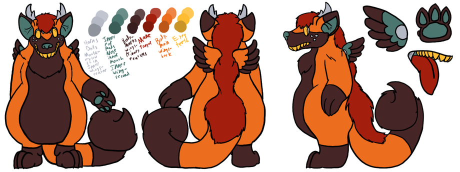 bulky and fluffy, rusty colors and has small pronged horns and a large overbite. Tail tends to stay curled at the end.