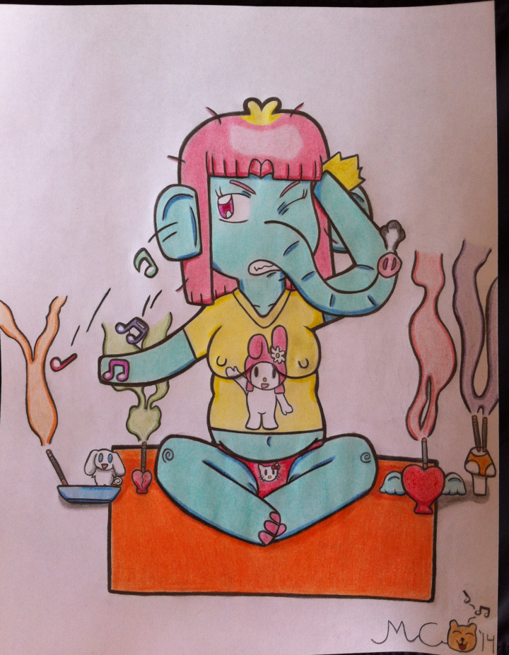 Ever have an annoyingly catchy song stuck in your head, while you try to concentrate on your morning meditation session, complete with colored incense smoke? Me neither, but it's happening to this annoyed elephant, and she's expelling the annoyance the best way she knows how.