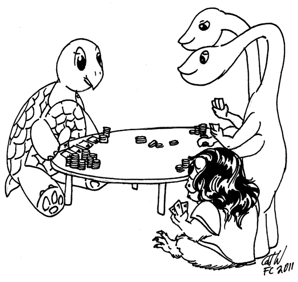KT, Sefo & Berlinda gather 'round a table for a game of poker.