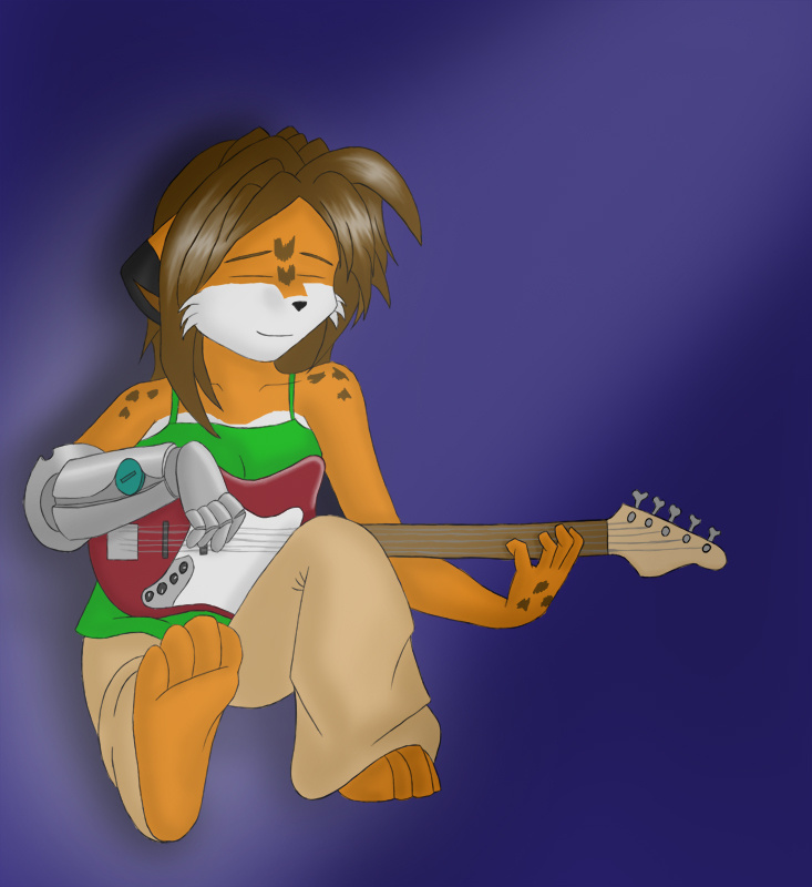 This was drawn for a contest held by Lengai ( https://lengai.deviantart.com/ ) of her character Piper doing something. Lengai plays bass IRL and I thought that was cool so I drew her playing a Fender 5 String.