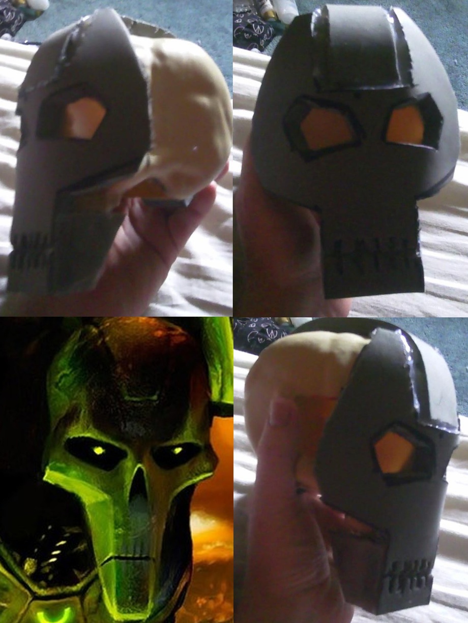 I used the plastic skull I preformed all my test cuts from the other skulls on as the base. I then cut out a face plate.