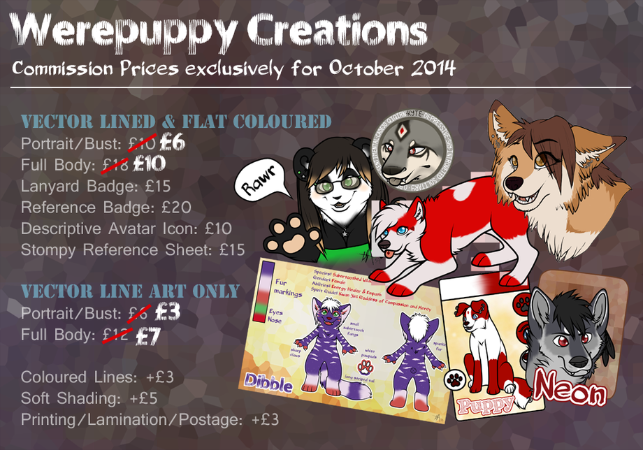 I currently have discounted prices for Portrait/Bust and Full Body artwork until the end of October.