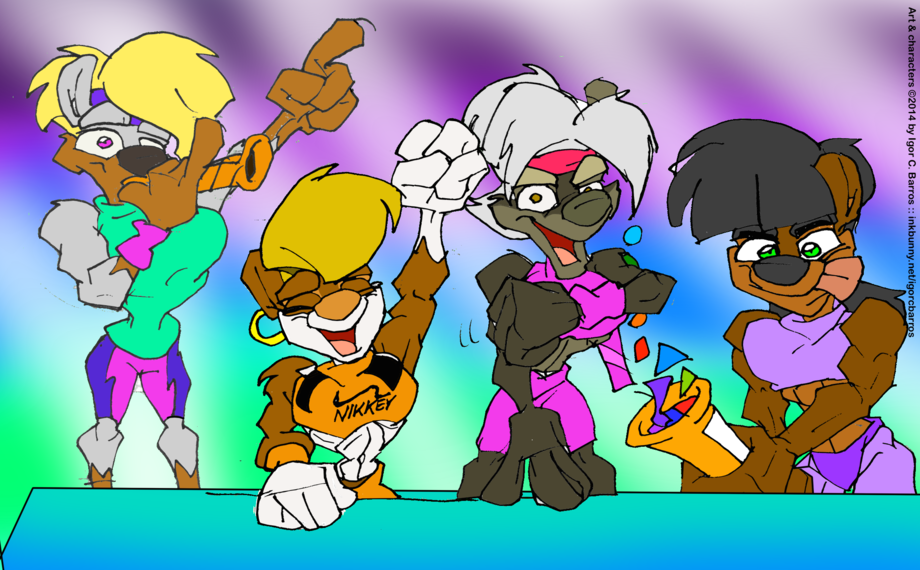 A drawing from my Tumblr of comics that I brought here because I found interesting. I barely show the gym kernel from Rosalyn's story, and this is a chance to view it. The character in pink suit are still unnamed, there are few characters that are 'known' at the story. At the original charge, they were celebrating the victory of Brazilian Bella Falconi in a fitness contest. Why? I'm something fat, and unlike most artists, I create my characters as opposites of myself in some or all aspects, and, as says the buzzword, opposites attract. In addition, celebrations, with this exact word, are some things that annoy me a little at my real-life job. When my time to celebrate will come?...