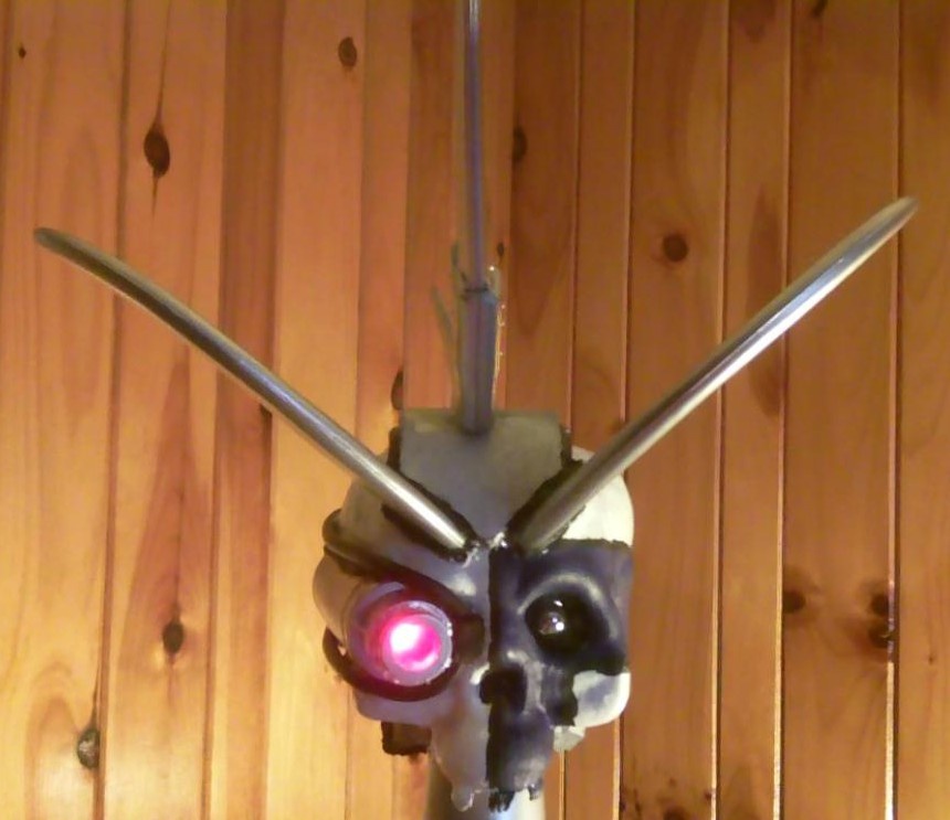 the mecha eye is a squeeze bottle with a few cast off plastic parts. I also used some eva foam painted silver or black then I used lengths of coaxial cable to accent the edges