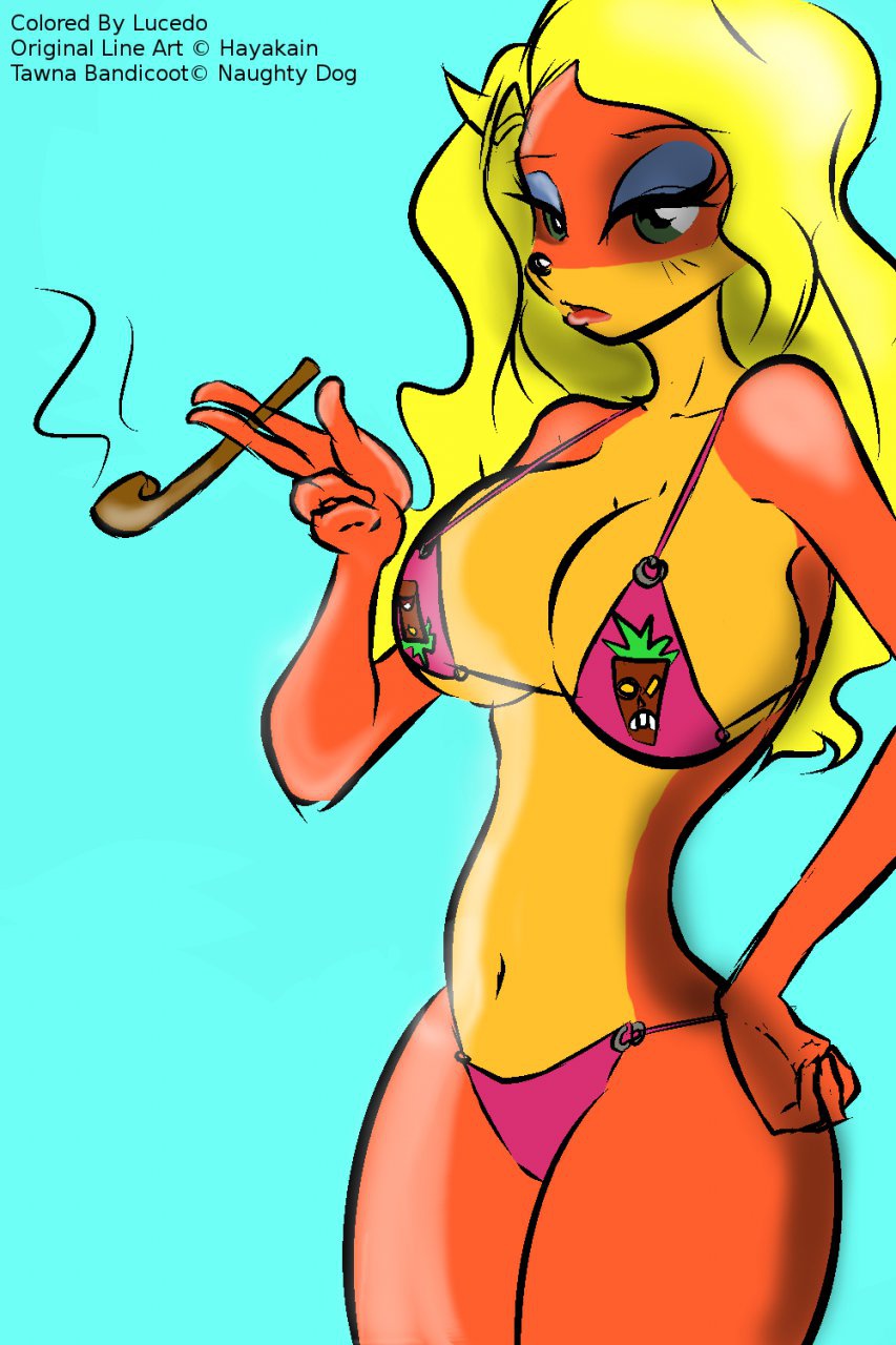 Earlier this week I got a stream request by @hayakain of Tawna Bandicoot in a bikini. I asked that if I can color it and he says it is okay for me to do so.