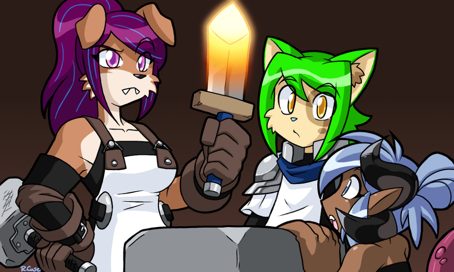 Been playing too much Final Fantasy 14 lately. If it isn't obvious. Nickie making Rinnsi a sword, while the minion Jemma watches on.
