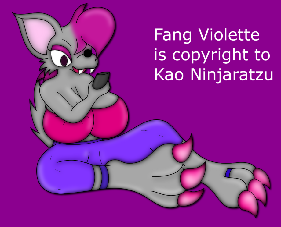 Anyway, Fang Violette (pronounced like the color, accent on the "let" though) is a Nocturatzu who lives in Wolfie Village. Unlike the rest of the village dwellers, Fang is actually more modernized in her use of technology and therefore tends to look as if she came from the city more than was raised in the village. Despite this, she tends to prefer the moonlight forest where she lives as she just feels more comfortable being herself around those she knows well. Fang is 5 years older than Kao though, and actually was Kao's babysitter when Kao was around 12-13 and staying in his own home. Despite being really eager to take care of him and showing deep affection for him (in a motherly kind of way, almost like an older sister if you will), she's not really interested in having children herself. Fang is clearly (finally) named after her oversized fangs that protrude. SHe doesn't actually use them much beyond tearing up meat, but she does like to intimidate people with them and see their reactions. Her last name is based on her favorite color, Violet.