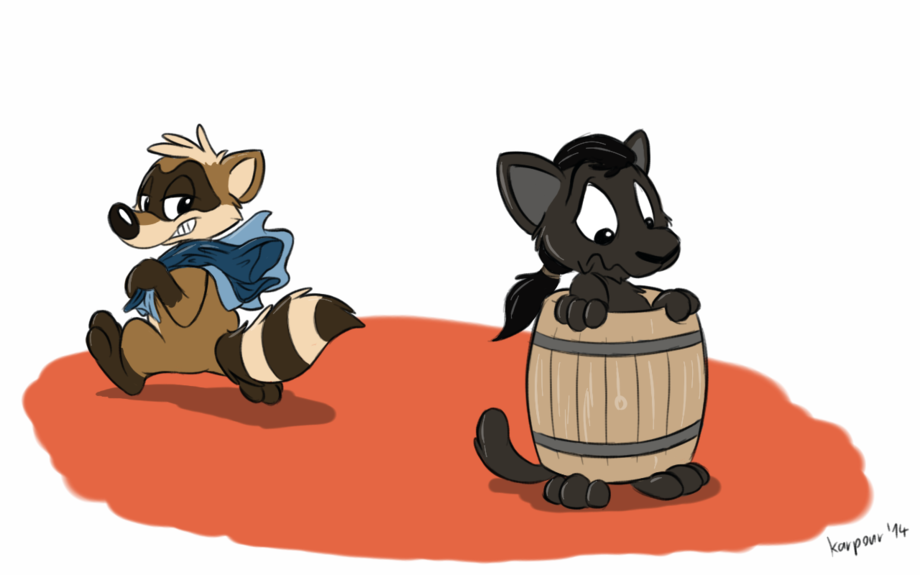 @atkelar gets his clothes stolen (again) by the thieving coon... good thing he always has his Acme insta-barrel with him.