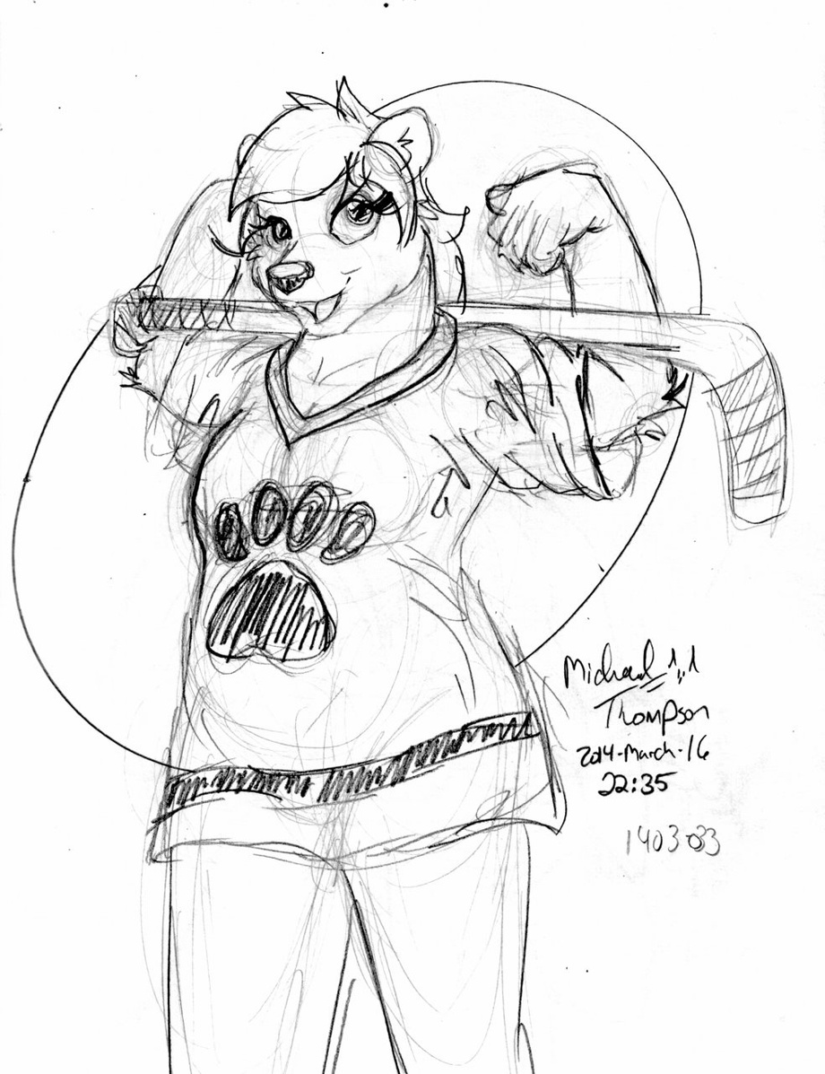 So here she is, a nice snuggly bear in her hockey jersey, with a logo similar to that used by VancouFur. Hmm, maybe I should submit her as a potential mascot for the con...