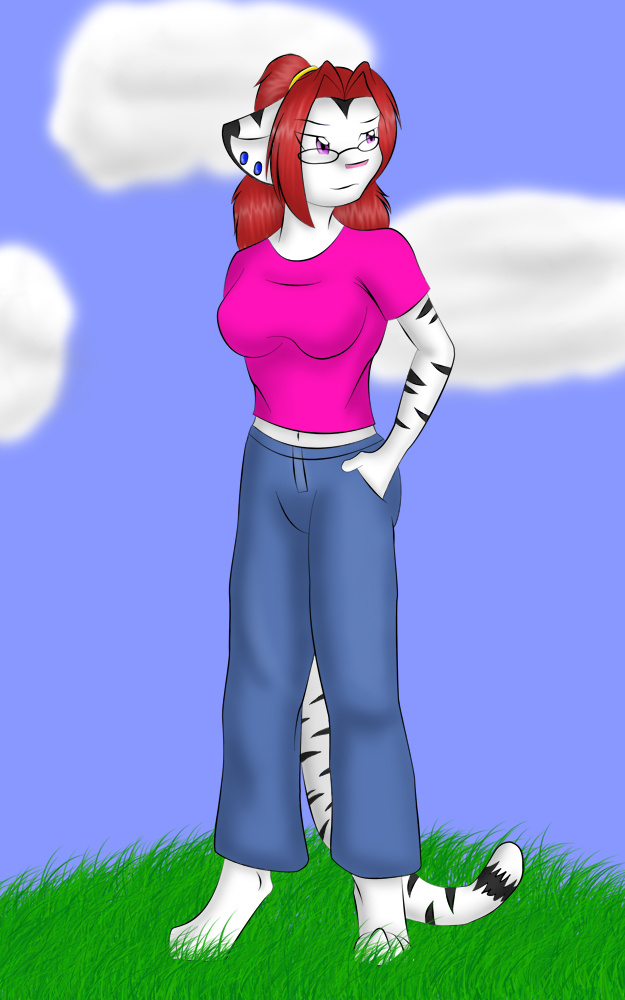 One of the first pictures I drew of my wife's character Pinko. Revel in the crappy grass brush and horribly rendered clouds.