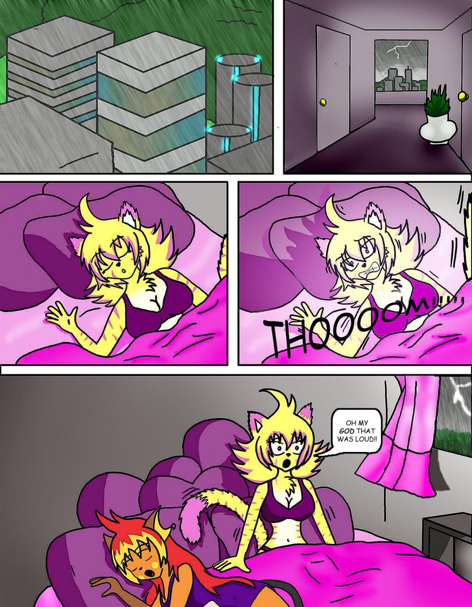 Having finished partying Eve returned home to plop on Amys bed and fall asleep, while Amy's super hearing causes her to waken during a storm Amy and Eve are property of me