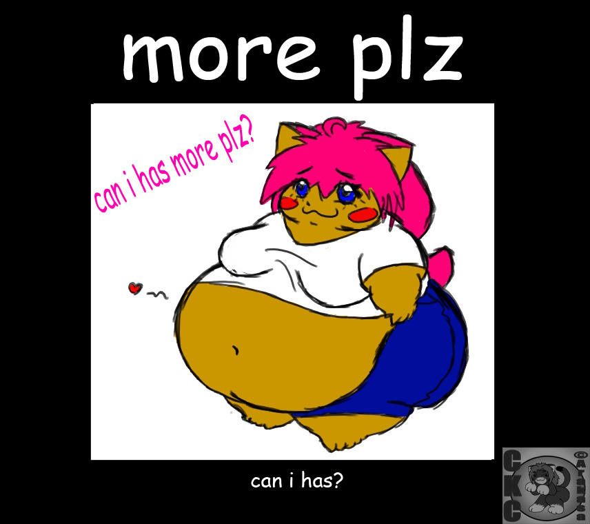 cheko-chan just got stuffed with foodz,but of course,shes cheko-chan,so she want some more :3 so i made up this lolcat thingie to that effect,dont know why,just felt like it cuz it seemed funneh :p