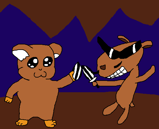 Bob the Hamster and a somehow manly-looking ham-ham underground. Bob has the SharpSeed from DireSpam.