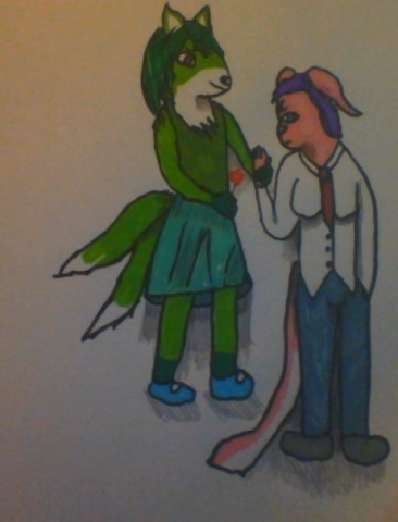 The two of us crossdress before going out on a date.