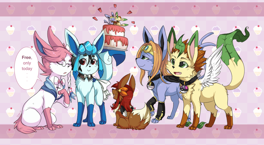 SoB offers a pretty birthday cake as a gift, that GoH, his most trusty waitress, carry on her tail (my OCs, mostly used on fA )