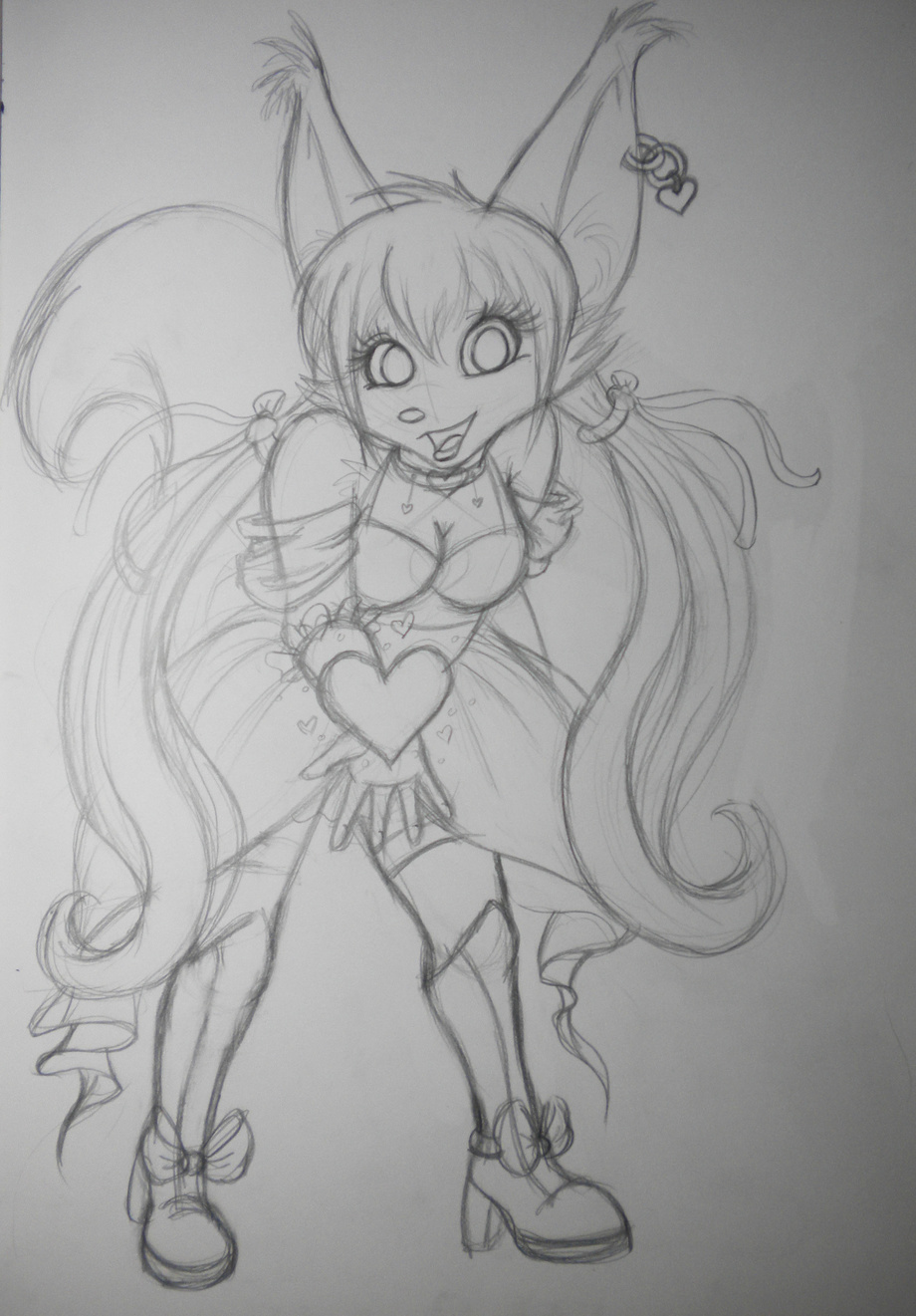 A rough sketch of my new character Mina =^.^= I'll be tidying up a lot of stuff in the picture when I ink it :3