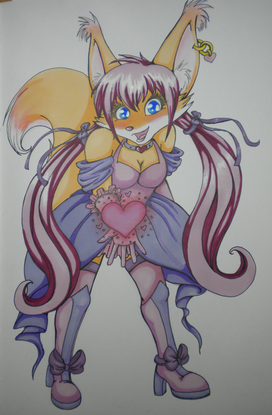 Coloured version of Mina :3 The pinks came out weird on the camera :l (I had to take a picture coz my scanner doesn't go up to A3 size)!
